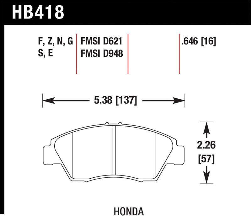 Hawk 02-06 RSX (non-S) Front / 03-09 Civic Hybrid / 04-05 Civic Si HPS Street Rear Brake Pads
