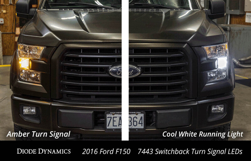 Features True replacement for factory incandescent 4257-size front turn signal bulb. Custom-molded base connector for correct fitment. Adds cool white running light, along with amber turn signal. High-power Samsung LEDs arranged around the bulb. No yellow appearance when switched off. Non-polar and CK compatible. Plug and play, simple installation. Overview Upgrade. Add dual-color functionality and a modern appearance to your front turn signals with the 4257 HP24 turn signal bulb. Populated with sixteen amber chips and eight white chips, this bulb lights up white when your headlights are turned on, and flashes amber when the turn signals are activated. Housed in an aluminum casing for maximum heatsinking properties, the HP24 will last for years to come. Best of all, installation only takes minutes - simply take out your factory bulb and the HP24 will fit snugly in the socket. The 4257 HP24 Switchback bulb features a custom-molded base connector, making it a true replacement for factory incandescent 4257-size front turn signal bulbs. Unlike a 3157 bulb that includes tabs on either side of the bulb, a 4257 bulb does not. The 4257 HP24 Switchback bulb is compatible with Ford vehicles using a dual-filament 4257-size front turn signal bulb with a clear reflector lens. Brightness. At 410 lumens, the HP24 will provide about double the total light output compared to your factory bulb. All Diode Dynamics LED lighting is rated with accurate, measured lumen figures, not calculations or guesses. We test the true output in-house, and provide you the real numbers to compare. Reliability. Unlike other bulbs on the market, this bulb is built with constant-current circuitry, along with transient suppression, meaning this bulb will last for years to come.