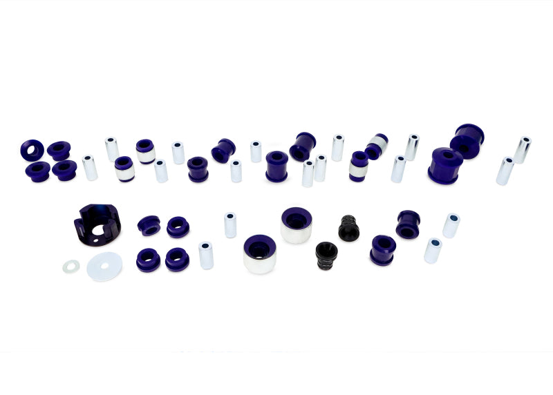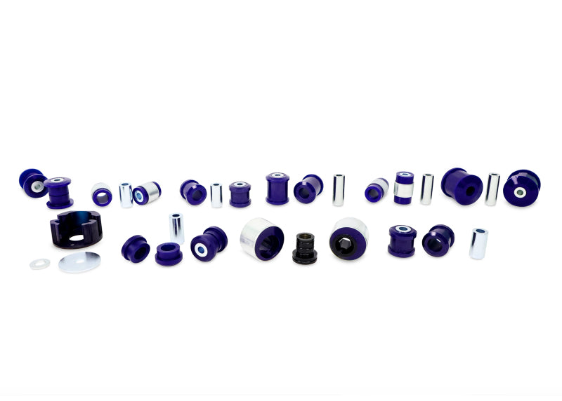 This kit has all the essential bushes needed to effectively increase the handling performance of a modified vehicle. Ideally suited as an entry level kit for a modified vehicle with bigger wheels or tires, brakes and lowered suspension. Kit contains: Front Control Arm Lower-Inner Front Bush Kit Front Control Arm Lower-Inner Rear Anti Lift Bush Kit - Performance Option Front Torque Arm Lower Insert Bush Kit - Performance Option Rear Control Arm Upper-Inner Bush Kit Rear Control Arm Upper-Outer Bush Kit Rear Control Arm Lower-Inner Front Bush Kit Rear Control Arm Lower-Front Outer Bush Kit Rear Control Arm Lower-Rear Inner Bush Kit Rear Control Arm Lower-Rear Outer Bush Kit Rear Trailing Arm Front Bush Kit