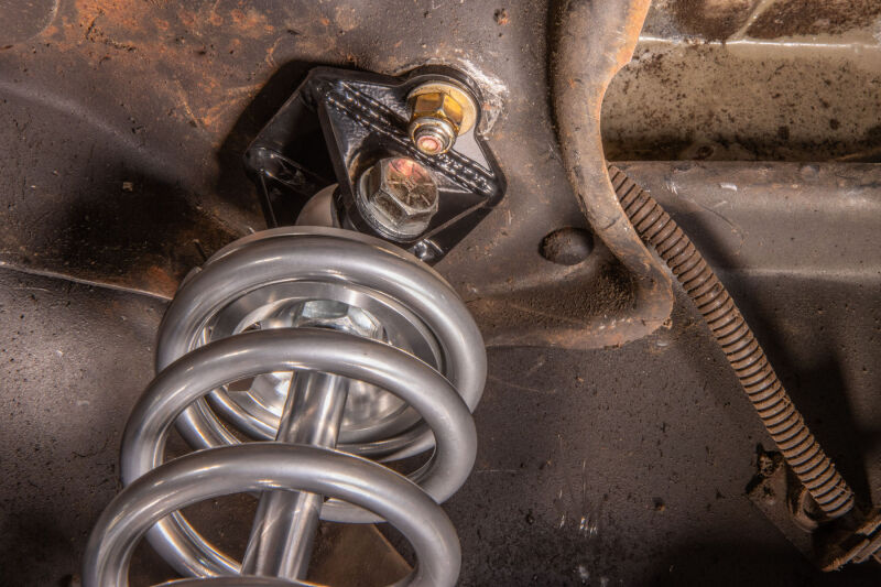 Add ride height and damping adjustments with a rear coilover kit on your 1978-1996 GM B-Body platform with UMI's bolt-in coilover conversion brackets with no welding required. When used with coilovers, it enables ride height selection as well as damping adjustment in both compression and rebound. Our heavy duty laser cut, Made In USA, steel brackets, are jig welded to ensure a great fit on factory GM B-body axles.