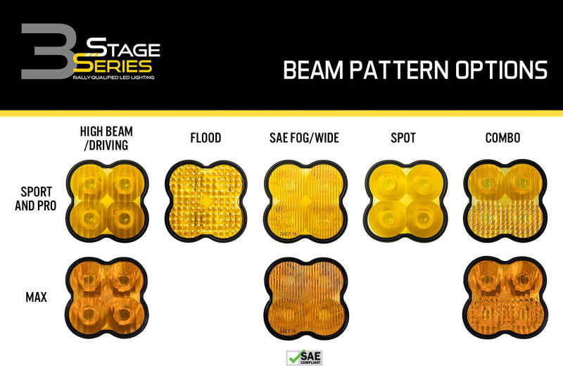 Features Yellow replacement lens for SS3 LED Pod Made out of durable polycarbonate, with preinstalled o-ring seal Advanced TIR optics provide high efficiency and focus Available in Driving, SAE Fog, or Combo, beam patterns Overview This yellow lens is a direct replacement for the original main lens in your SS3 LED Pod. It can be used to change both the color and output pattern, with a quick swap! Each lens comes with an integrated o-ring to maintain a watertight seal. Easy Swap. Changing the main lens in the SS3 takes just a few seconds! Remove the four torx-head screws from the back frame, pull the old lens and o-ring assembly out, and put in your new lens, which comes with the o-ring preinstalled. Take care not to touch the inner optical surface of your new lens during the swap, or wear a pair of gloves to keep things clean. The locating pins ensure correct alignment and rotation. Reinstall the four screws so they are very hand-tight, and you are ready to shine in your new color or beam pattern! Colors. SS3 LED pod lenses are available in clear material, producing white light, or a selective yellow filter. You can change the color of your lights by swapping out the lens, but please note that changing colors may not be perfect with these lenses, because different LEDs are used depending on the color of light you originally purchased. If you purchased Max pods originally, they have 6000K white emitters. In order to match the yellow output of our Sport and Pro Yellow SS3 pods, the lenses are a darker, more amber color.
