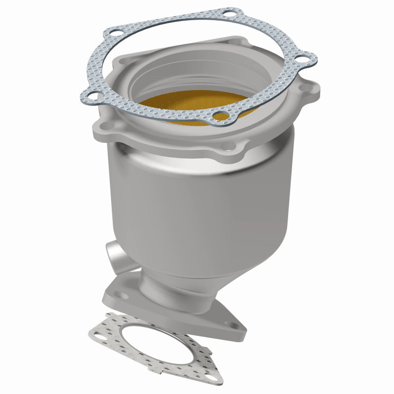 Keep the check engine light off with MagnaFlow HM Grade Federal/EPA Compliant Direct-Fit Catalytic Converter 23043. With features including free-flowing mandrel-bent tubing and highly corrosion resistant stainless steel construction, easily install this spun body converter yourself using the proper tools, no cutting or welding required. MagnaFlow's state-of-the-art metrology department uses the latest 3D scanning systems during research and development, so you can be confident that your new part will fit and function like the original equipment. By replicating the OE spun body design, the single laser fusion weld greatly reduces the possibility of a leak, and our compact, low-mass design also allows for greater thermal efficiency. Designed to fit the 2001-2006 Kia Optima, 1999-2005 Hyundai Sonata, and more, this direct-fit catalytic converter also interchanges with OE parts 28530-38750 and 28530-38760, among others. The included gaskets & hardware reduce the possibility of a leaking seal while avoiding the need to reuse corroded factory parts for installation. This replacement part is designed to meet or exceed Federal emissions requirements set forth by the EPA, complying with legal standards for OBDII Federally registered vehicles with Federal/EPA Emission systems.